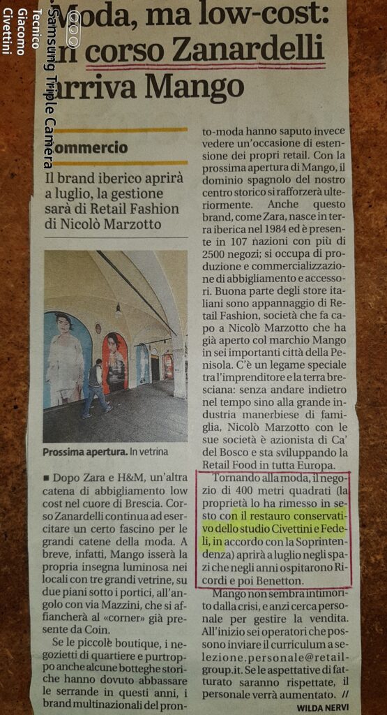 Articolo sul Giornale di Brescia per intervento edilizio su Corso Zanardelli, Brescia